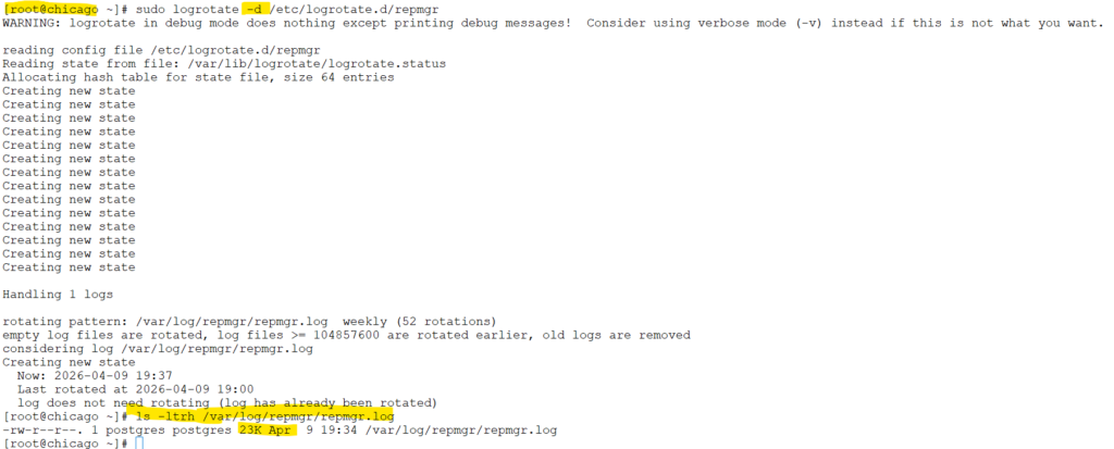 sudo logrotate -d /etc/logrotate.d/repmgrscreenshot