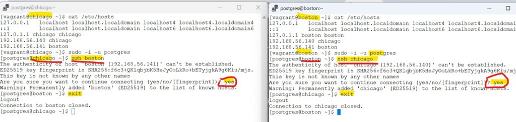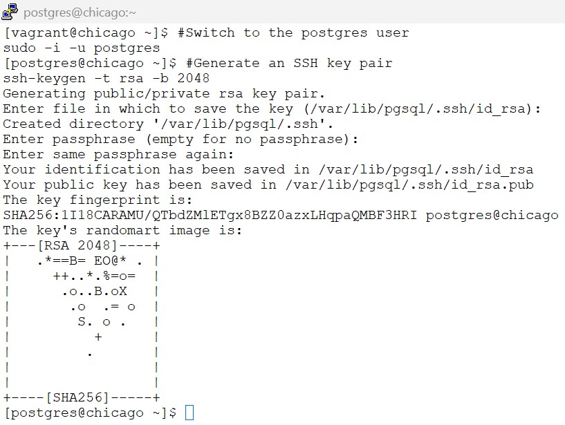 3.1.1 generate the ssh key pair on both chicago and boston as postgres user