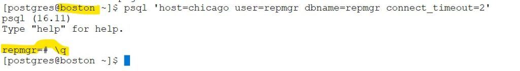 psql 'host=chicago user=repmgr dbname=repmgr connect_timeout=2'