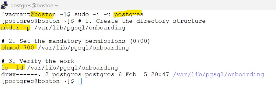 chmod 700 /var/lib/pgsql/onboarding
