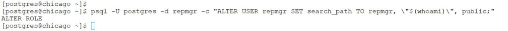psql -U postgres -d repmgr -c "ALTER USER repmgr SET search_path TO repmgr, \"$(whoami)\", public;"