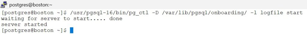 /usr/pgsql-16/bin/pg_ctl -D /var/lib/pgsql/onboarding/ -l logfile start